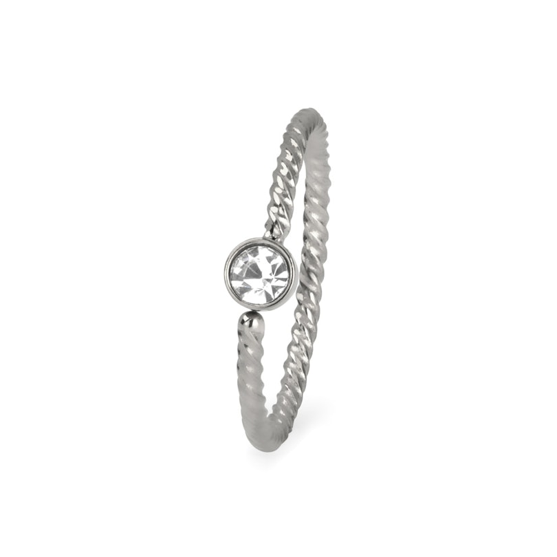 Questo cerchio intrecciato invece non ha bisogno di alcuna sfera di chiusura. La sfera che vedi, infatti, è solo un elemento decorativo e consiste in una pietra incastonata che punterà sempre nella stessa direzione, dato che, come abbiamo detto, è fissata nel cerchio. Ciò vuol dire anche che non puoi rimuoverla.