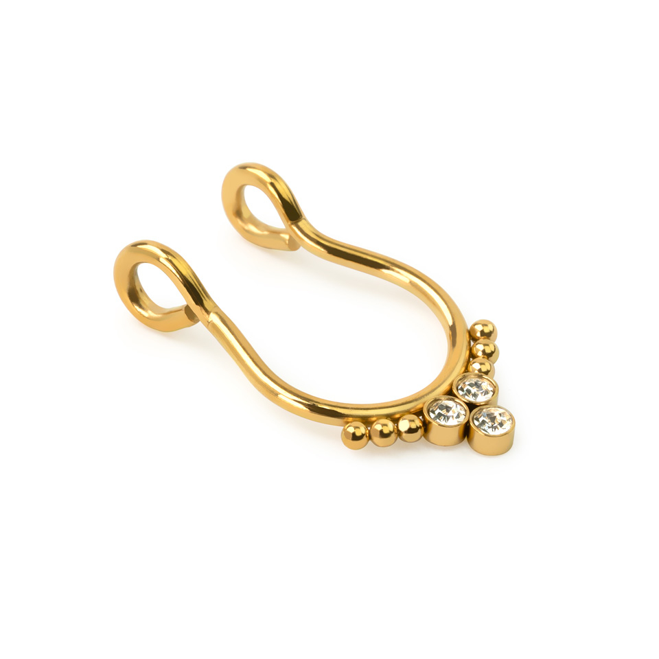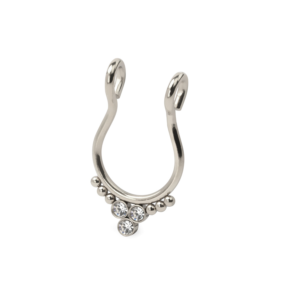 Cerchio per septum fake con tre pietre e perline laterali