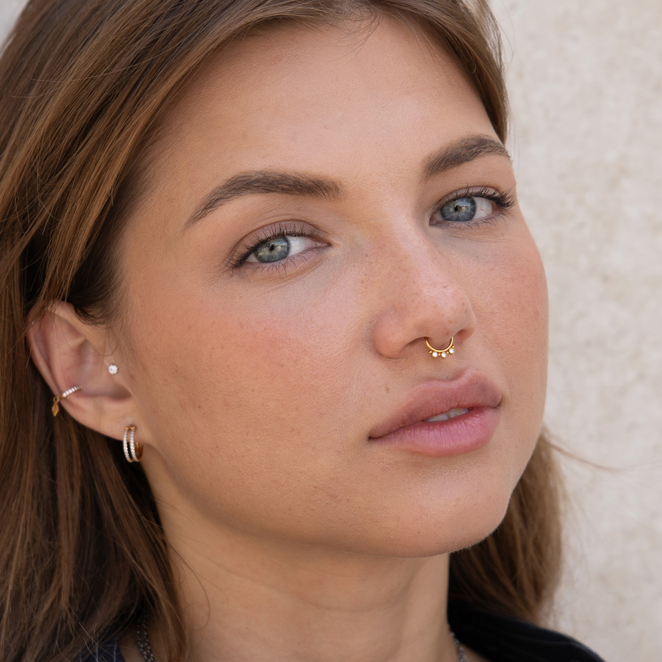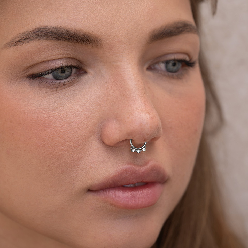 Cerchio per septum fake con tre pietre e perline