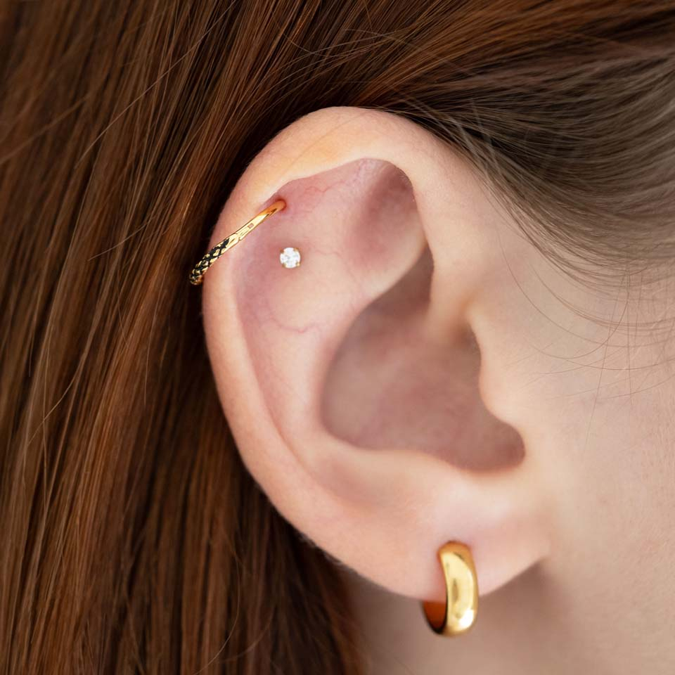 Posizione: Tragus, Spiderbite, Snakebite, Septum, Rook, Nostril, Lower labret, Lobo, Helix, Daith, Anti-helix