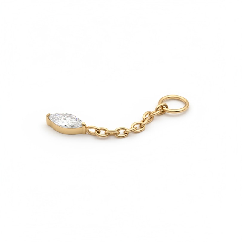 Questo charm con pietra ovale presenta uno stile semplice ma mai banale. Sospesa da una fine catenina in titanio, la gemma ovale si muove delicatamente insieme a te, aggiungendo un tocco di vivacità ai tuoi gioielli. È il tipo di dettaglio che funziona su tutto: puoi far scorrere l'anellino sul tuo cerchio preferito, purché non sia più spesso di 3 mm.