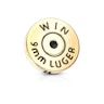 Il gioiello è realizzato in acciaio chirurgico e questa sarà la parte che verrà a contatto con la tua pelle. La pallottola è realizzata in ottone ed è rivestita con color oro, quindi sembra una vera e propria pallottola. Il gioiello misura all'incirca 7 mm, quindi c'è anche molto spazio per il testo inciso, che puoi vedere nella foto più in alto.