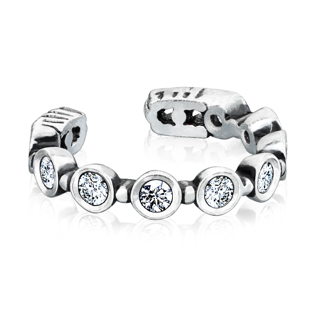 Ci sono anche 9 piccole pietre chiare che si trovano sull'earcuff. Queste sono disposte in un semicerchio che corre da un'estremità all'altra del pezzo. Ogni pietra ha una misura di 1,5 mm di diametro, infatti sono molto piccole. Tuttavia possono comunque catturare l'attenzione delle persone soprattutto quando la luce li colpisce.