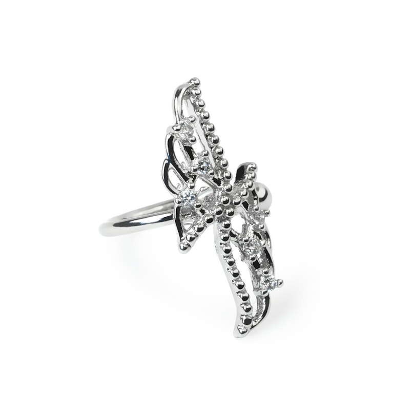 Questo glamoroso earcuff è decorato da un paio d'ali con piccole pietre e perline. Realizzato in acciaio chirurgico, questo gioiello non si ossida né perde colore sulla pelle - è davvero resistente.