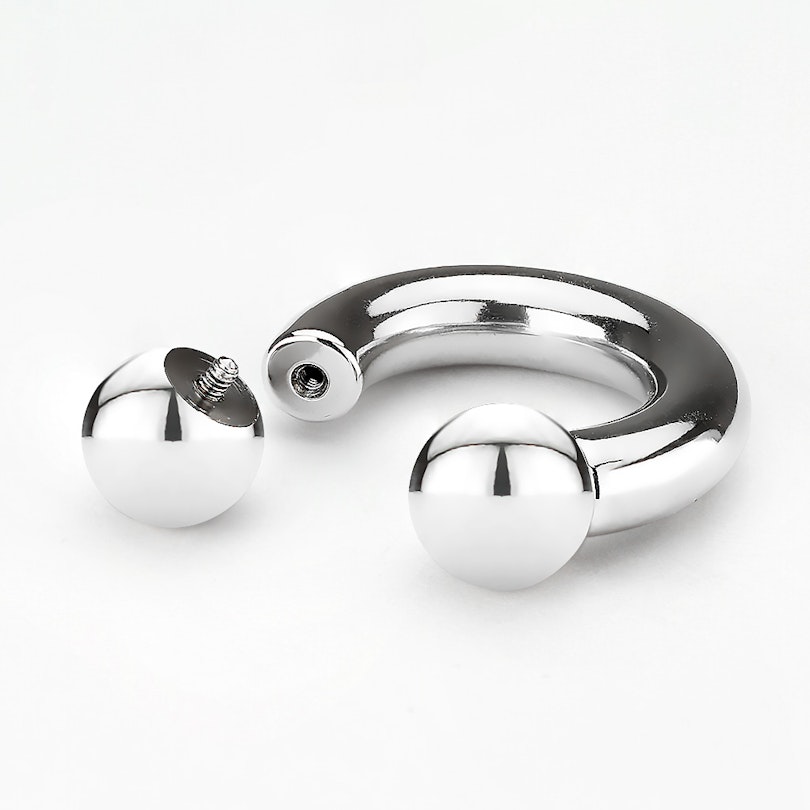 Questo ferro di cavallo è dotato di una filettatura interna molto pratica. Questo vuol dire che devi svitare le sfere di cavallo prima di inserire il cerchio attraverso il piercing e, in questo modo, non rischi di ricevere graffi oppure lividi. La filettatura infatti si trova sulla sfera che può essere avvitata senza dolori, una volta che hai inserito il cerchio al suo posto, lì dove dovrebbe stare.