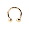 Questo che vedi è un favoloso ferro di cavallo realizzato in puro oro 14 carati. Il design di questo gioiello è classico, con due sfere a ciascuna estremità. É l'accessorio perfetto per coloro che cercano l'alta qualità dal look semplice. I ferri di cavallo sono molto versatili e si adattano a tanti piercing del corpo. Generalmente sono più usati in piercing al naso, al sopracciglio, al labbro o nei piercing intimi.