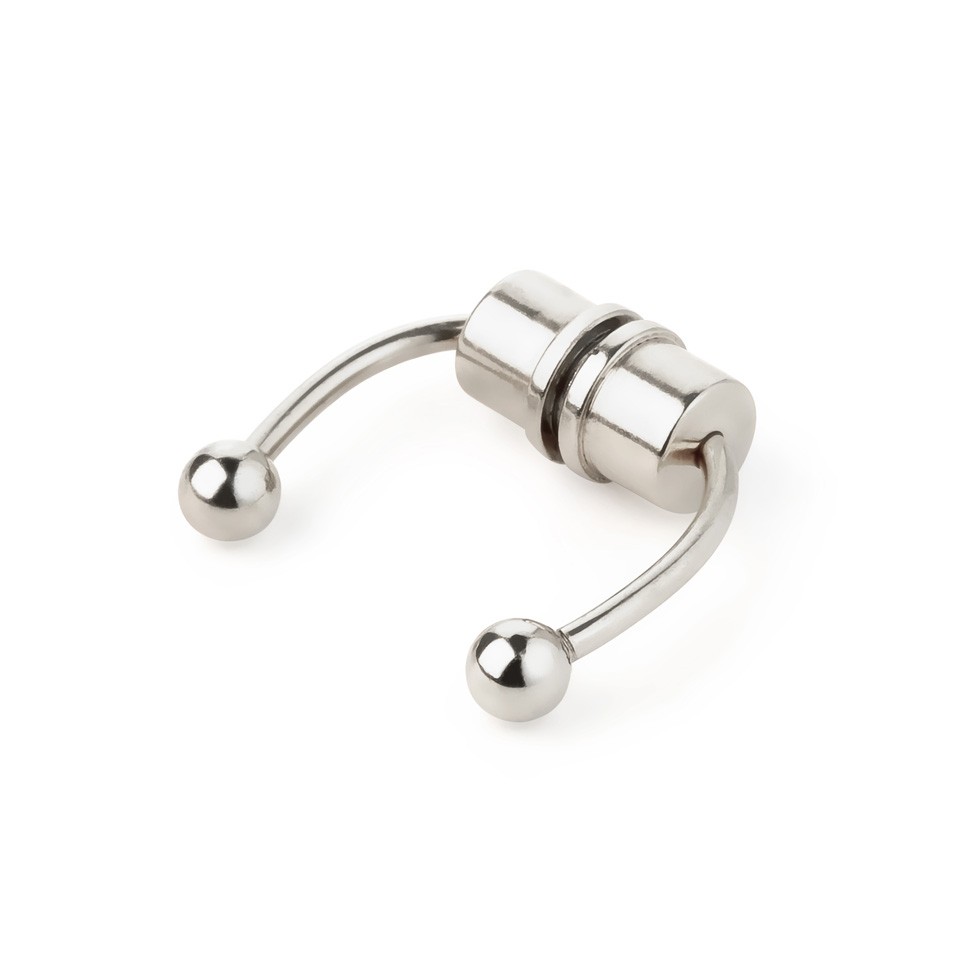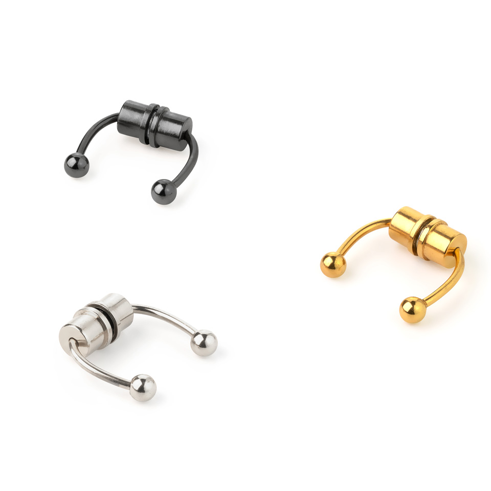 A volte può essere difficile realizzare gioielli da piercing fake dato che quelli veri sono progettati per attraversare la pelle. É possibile realizzarne uno quando il gioiello è composto da un unico pezzo: in questi caso, si può mettere una piccola molla in modo da farlo aderire alla pelle da cui, normalmente, penderebbe. Tuttavia, ciò non è normalmente possibile nei ferri di cavallo, dato che sono divisi in due parti. Ma qui abbiamo risolto questo problema con l'aiuto di magneti. Grazie a questi, il gioiello è perfetto in quelle parti del corpo dove è parzialmente nascosto, come il septum, dove il foro è nascosto nel naso. Se lo usi in altre parti del corpo, dove invece il foro è visibile, anche i magneti saranno visibili e con loro il fatto che il tuo piercing è finto.