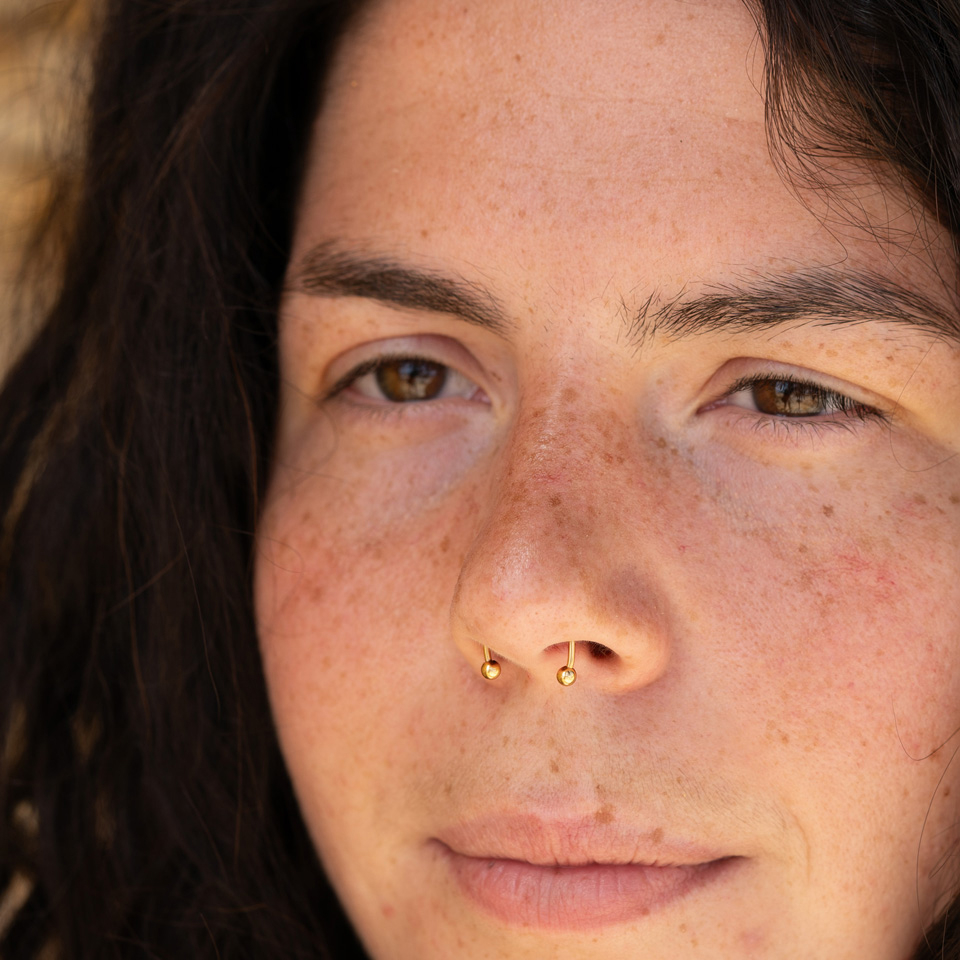 Questo gioiello è perfetto per un servizio fotografico, o per chi non sa ancora se farsi un piercing septum. I magneti sono realizzati per adattarsi alle sottili pareti interne del naso, non nella cartilagine dura che puoi sentire con le dita. L'anatomia e lo spessore della parete nasale potrebbero influenzare il modo nel quale questo gioiello si posizionerà e la potenza dei magneti.