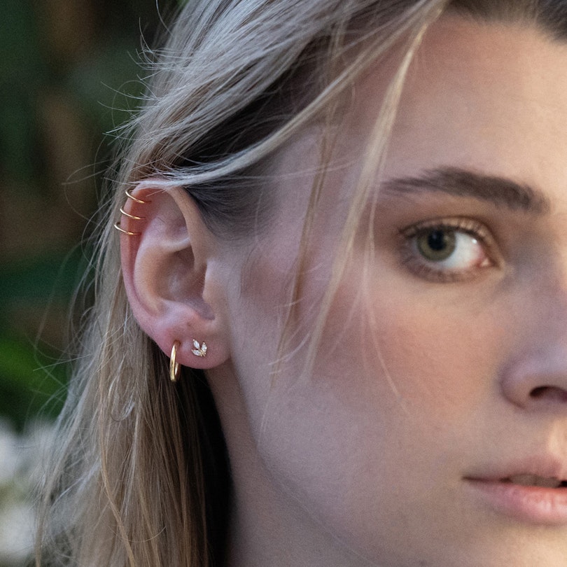 Questo earcuff consiste in due o tre anelli, ed ha un lato aperto per poter essere messo all'orecchio senza bisogno di piercing.