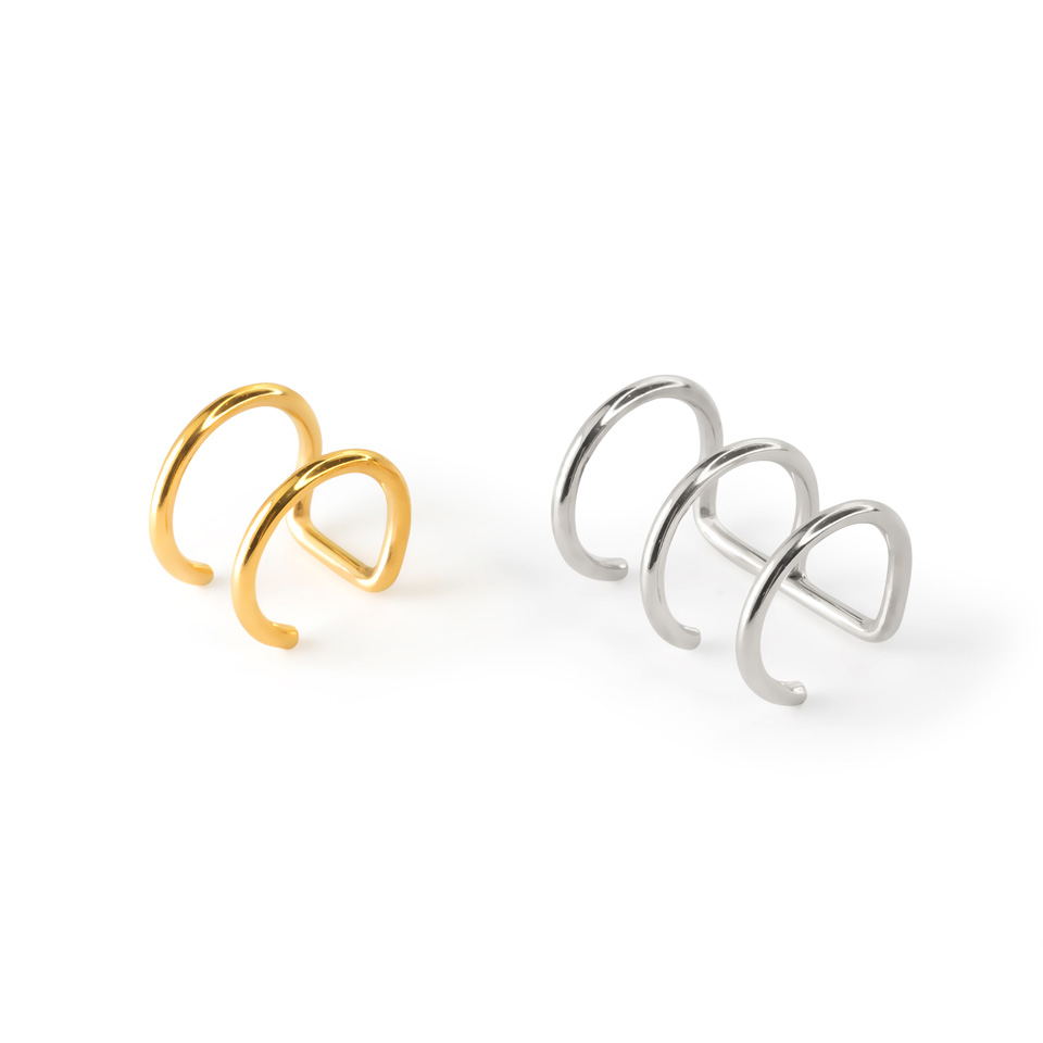 Questo earcuff consiste in due o tre anelli, ed ha un lato aperto per poter essere messo all'orecchio senza bisogno di piercing.