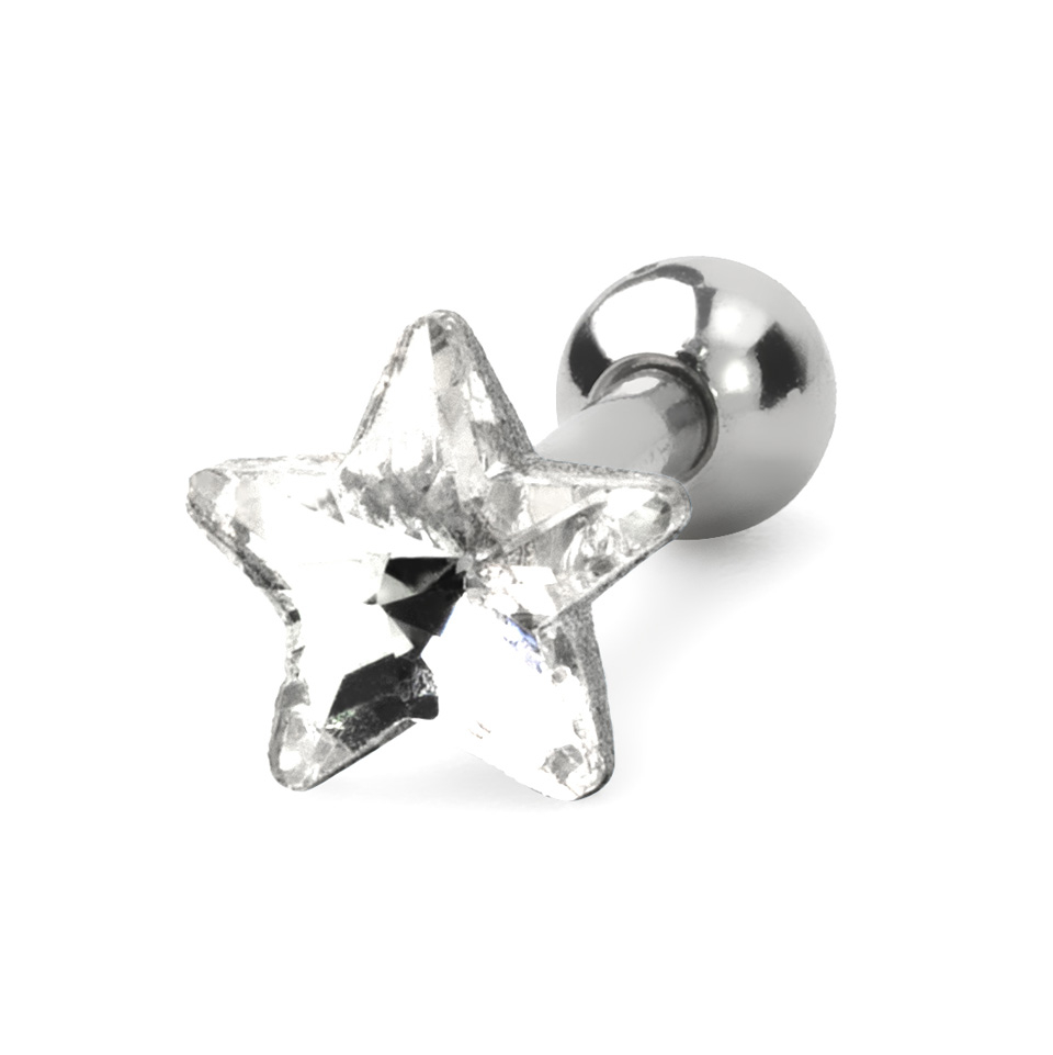 Nell'immagine qui sopra puoi vedere un gioiello per piercing all'orecchio in diversi design. Puoi scegliere la pietra di zirconia cubica a forma di cuore, di stella o di goccia. Le misure sono: