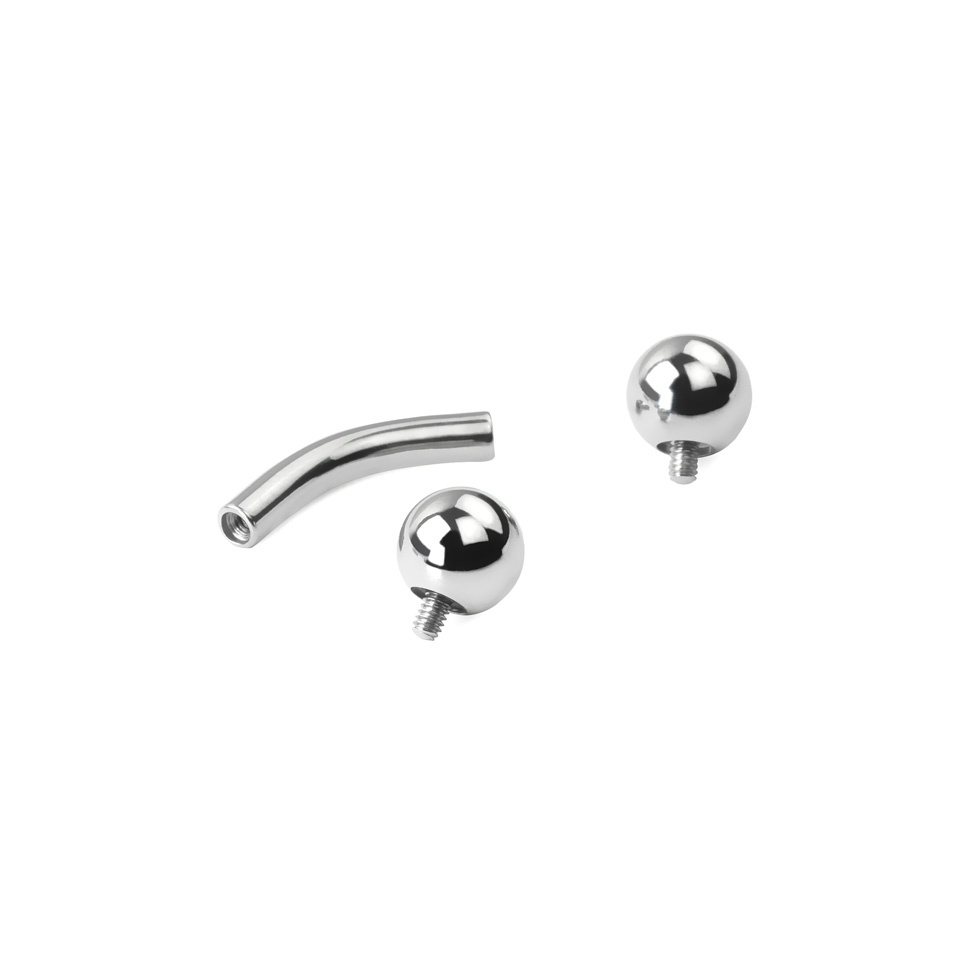 Questa barra curva è anche dotata di filettatura interna. Questo aspetto semplifica l'inserimento del gioiello nel piercing, poiché la filettatura si trova sulla sfera e non sulla barra.