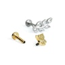 Questo labret dallo stile chic è dotato di filettatura interna e un top decorativo con una parte filettata che si avvita nel labret. La barra che attraversa il piercing è realizzata in acciaio chirurgico, mentre la foglia è di ottone. Il gioiello è stato poi rivestito, puoi così sceglierlo tra vari colori: grigio brillante, oro giallo o oro rosa.