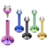 Carinissimo labret in acciaio chirurgico con rivestimento in titanio, disponibile in cinque strepitosi colori. É un labret diverso dai labret comuni, che sono solo colorati di argento. Non solo, ha anche il grande vantaggio di essere filettato internamente, quindi il rischio di graffi quando lo inserisci o lo estrai è minimo.