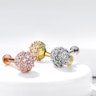 Il gioiello che ti presentiamo è dotato ad una estremità di una sfera enorme con un diametro di 6 mm. Questa sfera è tempestata di tantissime piccole pietre trasparenti che, colpite dalla luce, la riflettono creando un effetto mozzafiato.