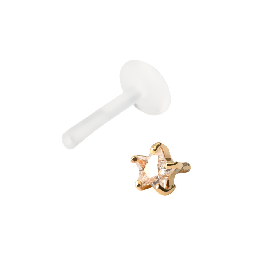 Nome: Labret in oro 14 carati con pietra a stella e barra in ptfe