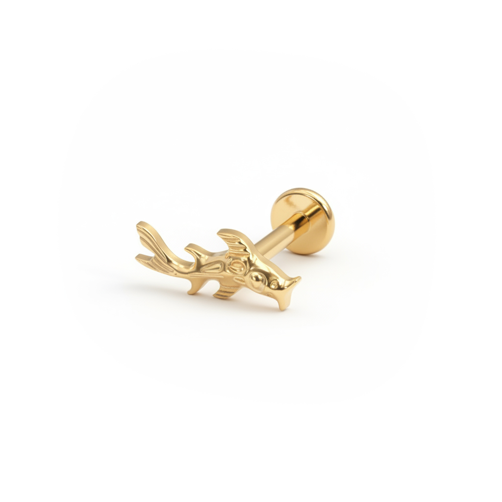 Questo labret in titanio con carpa porta più di semplice design, porta significato. Ispirato alle carpe koi, simbolo di forza e trasformazione, questo labret ti accompagna nei momenti di cambiamento. Disponibile nelle finiture oro e argento, è curato nei minimi dettagli.