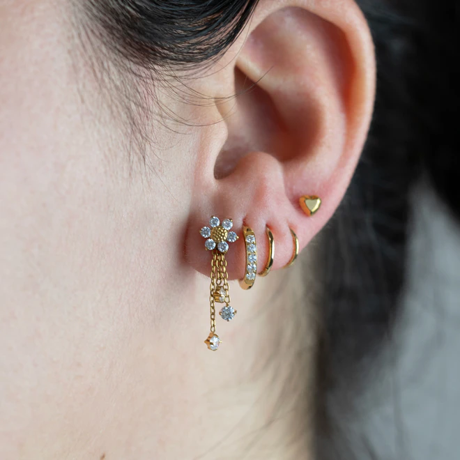 Ideale per i piercing conch, helix, lobo o tragus, questo labret è un piccolo omaggio all'amore per se stessi, mentre con eleganza sfoggia sul tuo orecchio.