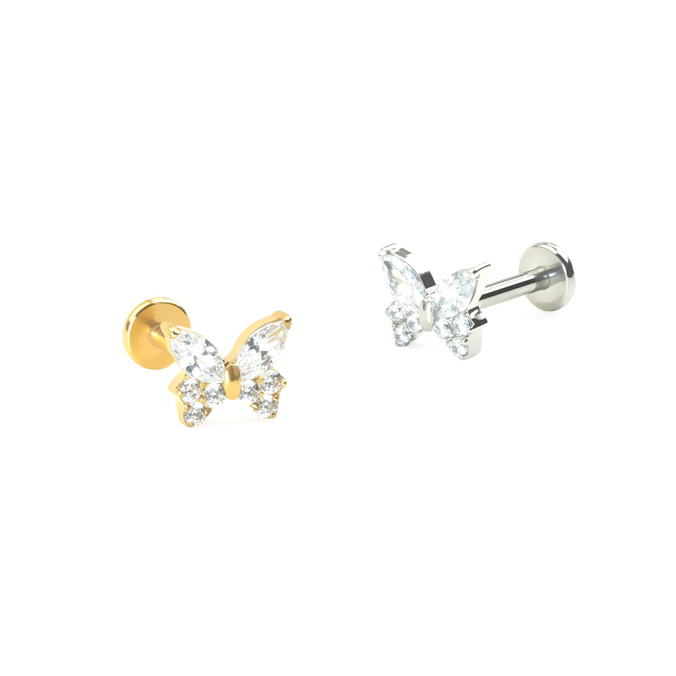 Nome: Labret in titanio con farfalla di zirconi