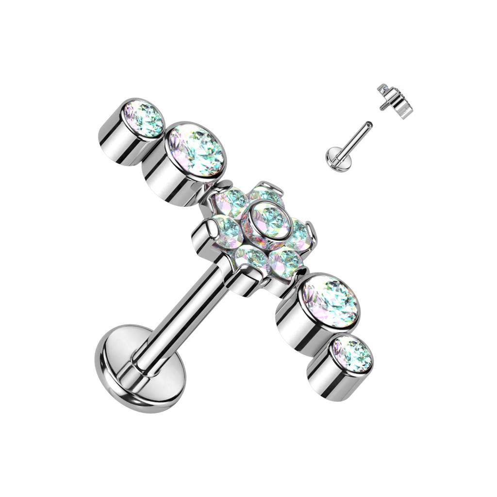 Nome: Labret in titanio con fiore centrale e pietre