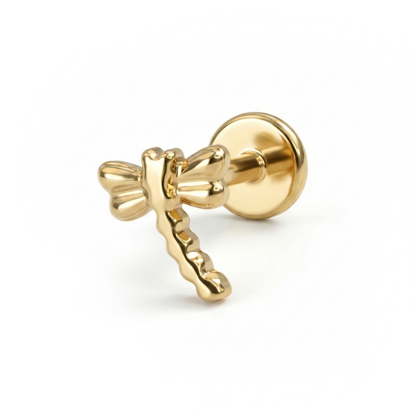 Questo grazioso labret presenta una delicata libellula. Realizzato in titanio, assicura una vestibilità comoda anche per le pelli più sensibili. La dimensione delicata (la libellula misura 5,8 mm) rende questo gioiello adatto a una vasta gamma di piercing all'orecchio. Il labret è dotato di un meccanismo di chiusura push-in, quindi è semplicissimo da fissare nel tuo piercing.
