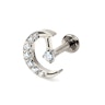 Questo grazioso labret presenta una mezzaluna tempestata di piccole pietre di zirconia e una pietra di zirconia più grande attaccata alla parte superiore della luna.