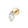 Questo gioiello dal design classico presenta una pietra di zirconia cubica a taglio marquise su un labret in titanio. Il labret è dotato di filettatura interna, quindi basta inserire la barra liscia nel piercing e avvitare il top per fissarlo. Questo modello dallo stile senza tempo è fantastico nei piercing alla cartilagine, al lobo e al labbro.