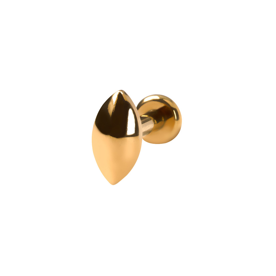 Questo bellissimo labret in titanio con top ovale arrotondato ha un originale design 3D. É dotato di filettatura interna e, dato che è realizzato in titanio, è sia ipoallergenico che waterproof. Questo gioiello si adatta perfettamente in una vasta gamma di piercing all'orecchio inclusi, ma non limitati, i piercing tragus, helix e conch. É disponibile nelle finiture color oro giallo o grigio argento.