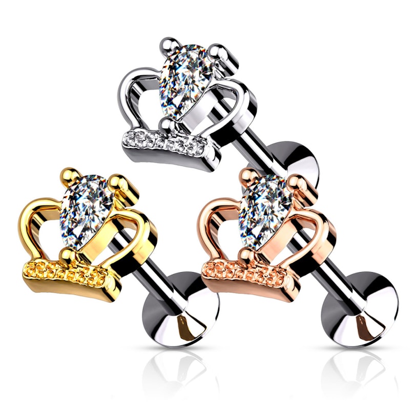 Labret push-in con corona e pietra