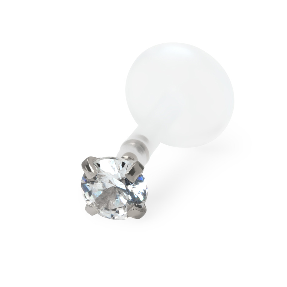 Questo grazioso labret ha un top in acciaio con pietra disponibile in tre diversi design, e asta in PTFE. Dato che il PTFE è un materiale morbido e resistente, è una scelta ideale per i piercing orali. Il PTFE è ottimo, nello specifico, per proteggere gengive e denti, molto più dei gioielli in metallo.