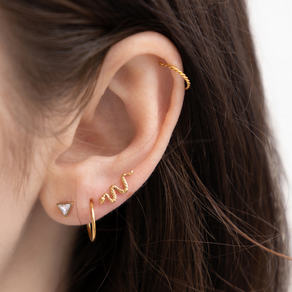 il gioiello è molto carino e dettagliato, il fatto che sia sottile lo rende sobrio e utilizzabile anche se si hanno più orecchini su un solo orecchio senza rendere l'effetto troppo carico. L'unico problema che mi sento di segnalare è che lo stelo dell'orecchino è molto corto, mentre quello del perno dietro fin troppo lungo, il che rende difficile la chiusura