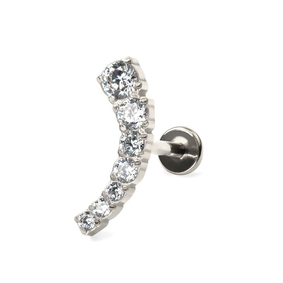 Labret push-in in titanio con top curvo e pietre