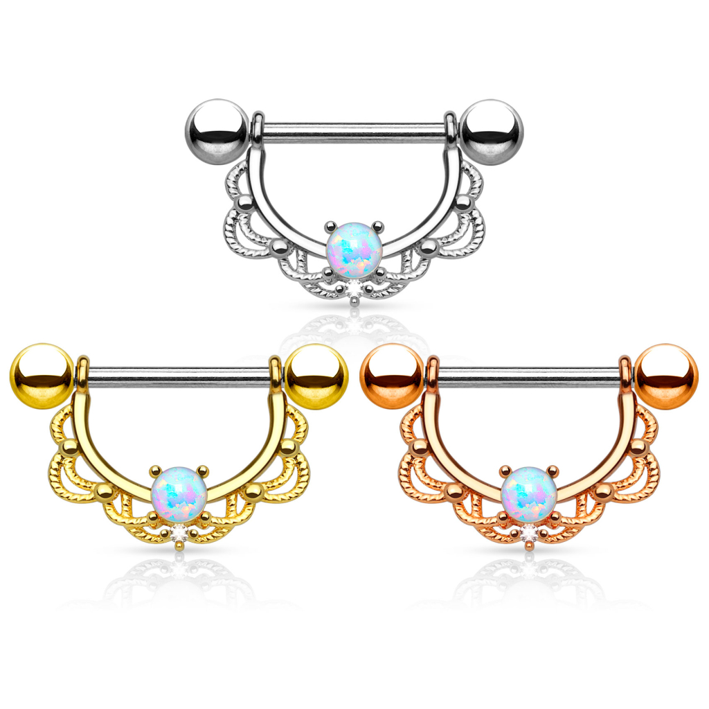 Nome: Piercing al capezzolo con filigrana e pietra opale