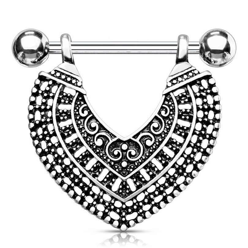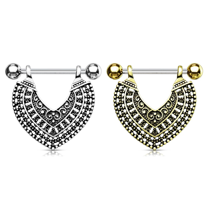 Nella foto sopra puoi trovare un piercing al seno perfetto per le persone che amano le cose antiche. Anche se gli oggetti antichi sono spesso esposti in punti che siano facilmente visibili, questo gioiello è perfetto per i capezzoli e si può mostrarlo solo a persone speciali.
