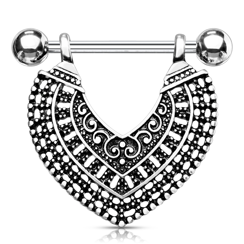 Nella foto sopra puoi trovare un piercing al seno perfetto per le persone che amano le cose antiche. Anche se gli oggetti antichi sono spesso esposti in punti che siano facilmente visibili, questo gioiello è perfetto per i capezzoli e si può mostrarlo solo a persone speciali.