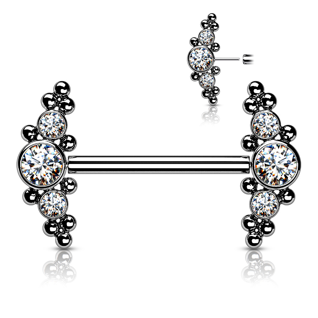 Piercing al capezzolo in titanio con pietre a grappolo senza filettatura