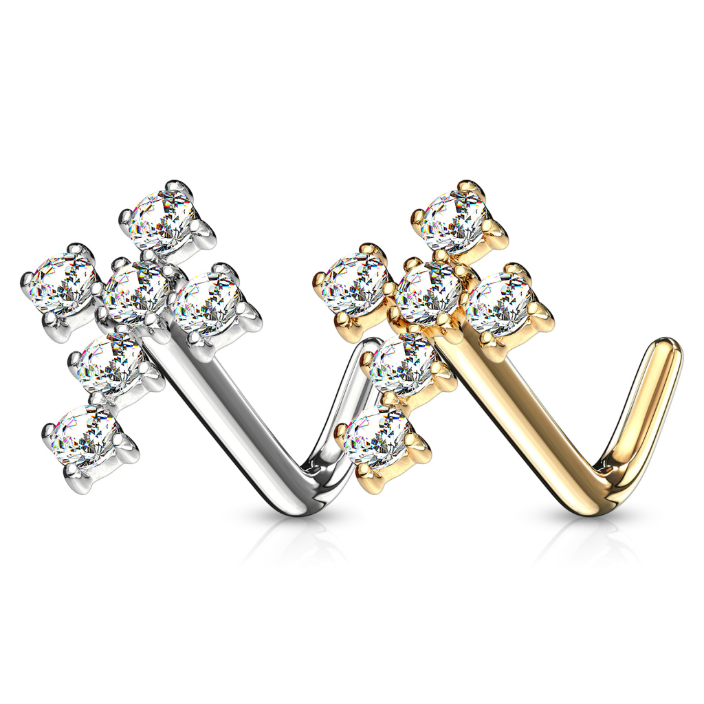 Nome: Piercing al naso in oro 14K con croce di pietre