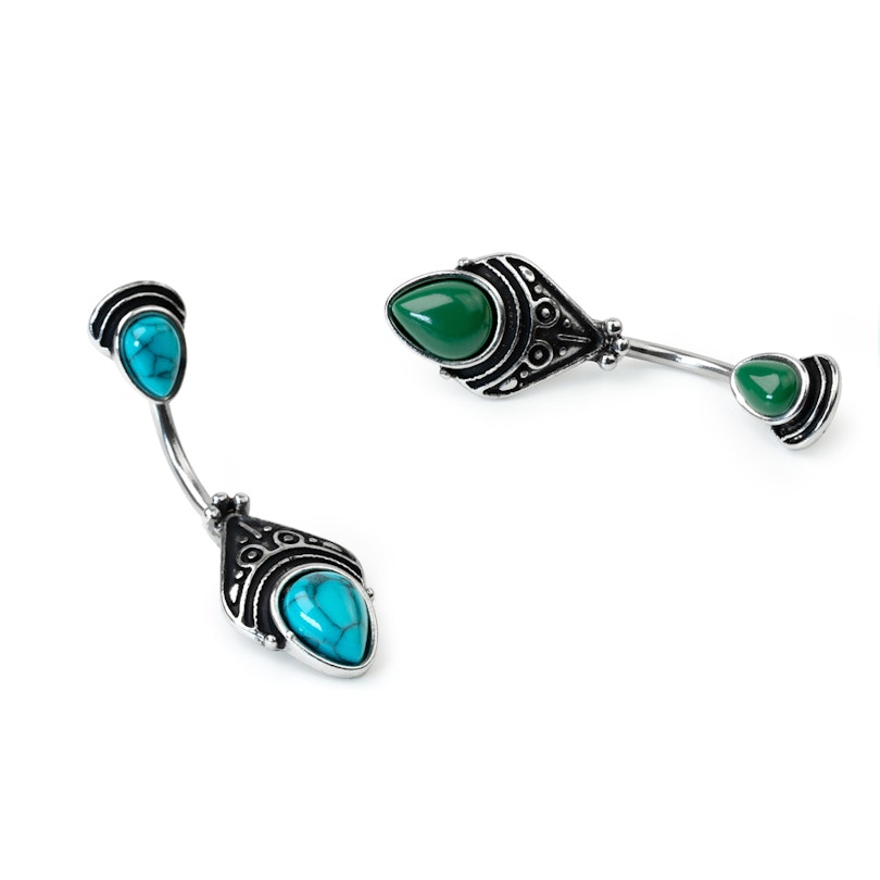 Piercing all'ombelico con antico disegno in filigrana e pietra a forma di goccia