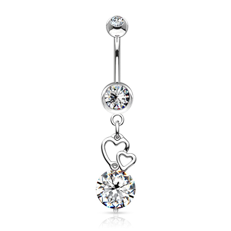 Nome: Piercing all'ombelico con cuori e cristallo grande