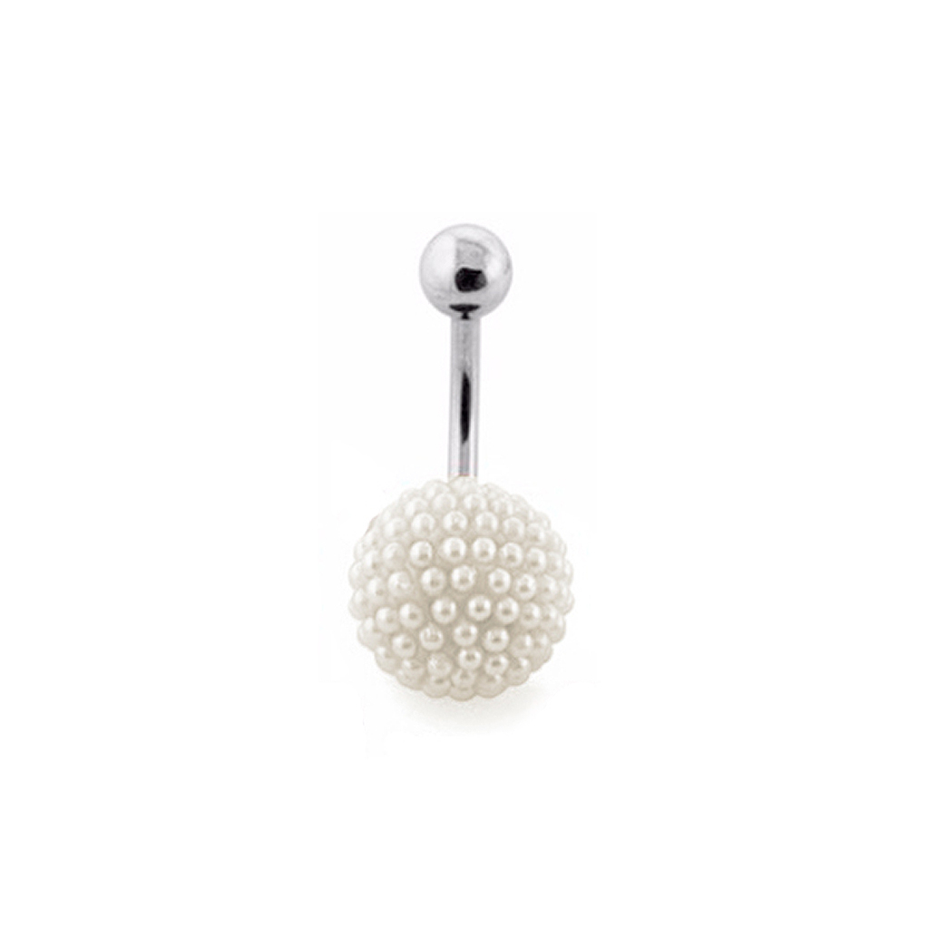 I piercing all'ombelico e le sfere a perla sono una combinazione perfetta. Questa combinazione è perfetta anche in questo modello grazie alle numerose piccole pietre che decorano la sfera inferiore. La sfera superiore e la barra sono entrambe fatte in acciaio chirurgico mentre la sfera inferiore è fatta di argilla decorata con piccole pietre in acrilico, lasciata indurire e infine attaccata alla barra. Il colore dell'argilla è ovviamente coordinato con le piccole sfere in acrilico.