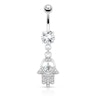 Piercing all'ombelico con pietra e pendente a hamsa