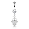 Nome: Piercing all'ombelico con pietra e pendente a hamsa