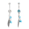 Piercing all'ombelico con sfere turquoise e pendente a foglia