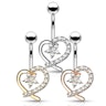 Questo piercing all'ombelico in tutta la sua semplicità consiste di un cuore e una stella ( o un fiore se si vuole). Da questo parte l'asta che attraversa il piercing all'ombelico e termina con una sfera di bloccaggio. La decorazione è caratterizzata da un cuore con pietre lungo il bordo e da una stella nel centro. La stella ha anche delle piccole pietre uguali a quelle presenti sul cuore. Questo non è simmetrico, il che da l'idea che il gioiello sia leggermente distorto.