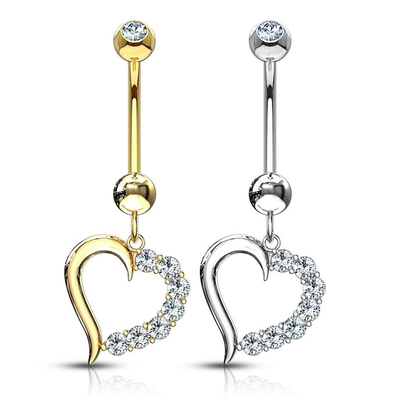 Nome: Piercing all'ombelico d'oro 14 carati con pendente a cuore tempestato di pietre