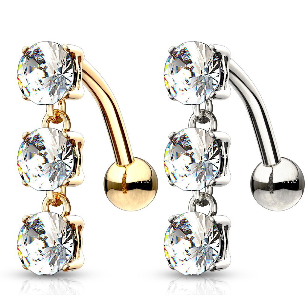 Nome: Piercing all'ombelico d'oro 14 carati con pendente rovesciato e tre pietre