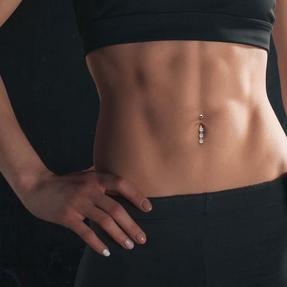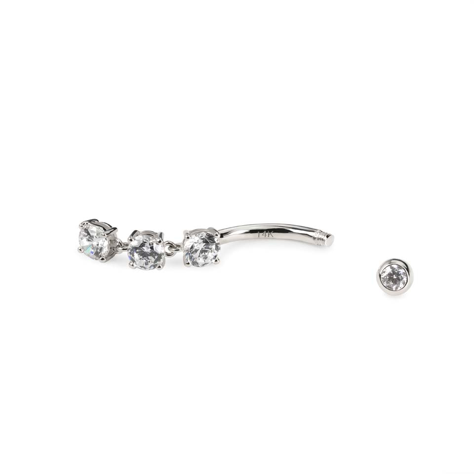 Piercing all'ombelico in oro 14 carati con tre pietre
