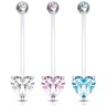 All'estremità posteriore della barra si trova una pietra a forma di cuore che puoi scegliere in tre colori differenti. La pietra incastonata nella sfera superiore ha lo stesso colore del cuore.