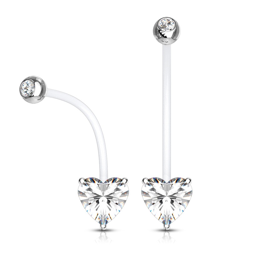 Piercing all'ombelico in PTFE con pietra a forma di cuore