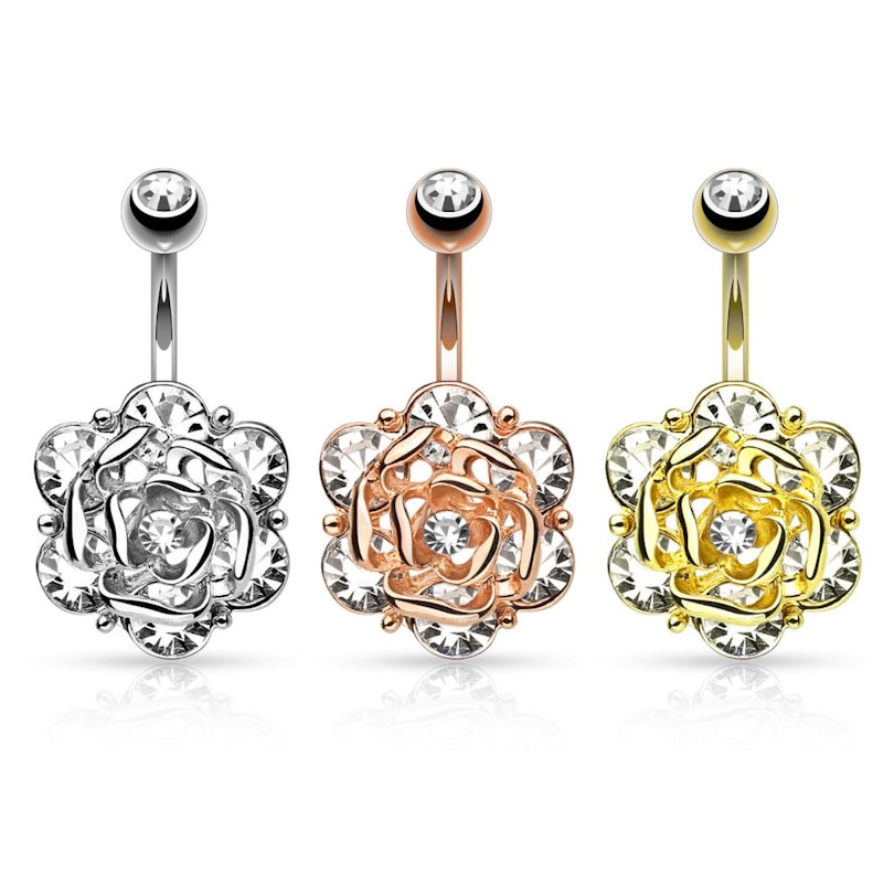 Se sei alla ricerca di un mare di brillantezza, allora sei arrivato al posto giusto. Qui hai infatti la possibilità di comprarti un piercing all'ombelico con un fiore così impressionante che attira subito l'attenzione.